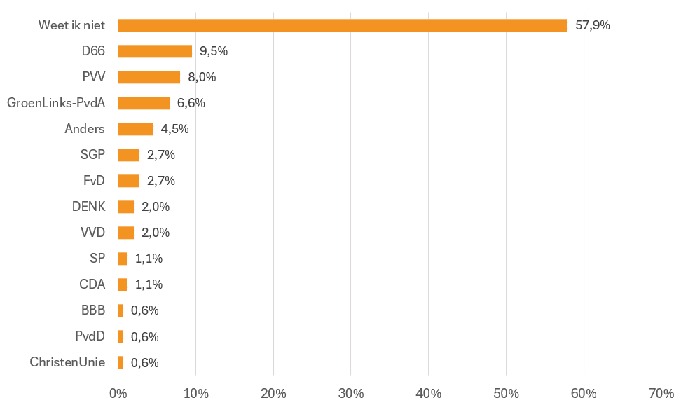 In het onderzoek werd onder andere gevraagd welke politieke partij volgens ouders de beste onderwijsplannen heeft. Hierop geeft 58% van de ouders aan niet te weten welke partij de beste plannen heeft. Sommige ouders weten wel al naar wie hun voorkeur gaat. D66 (10%), PVV (8%) en GL-PvdA (7%) worden het vaakst als favoriet genoemd.