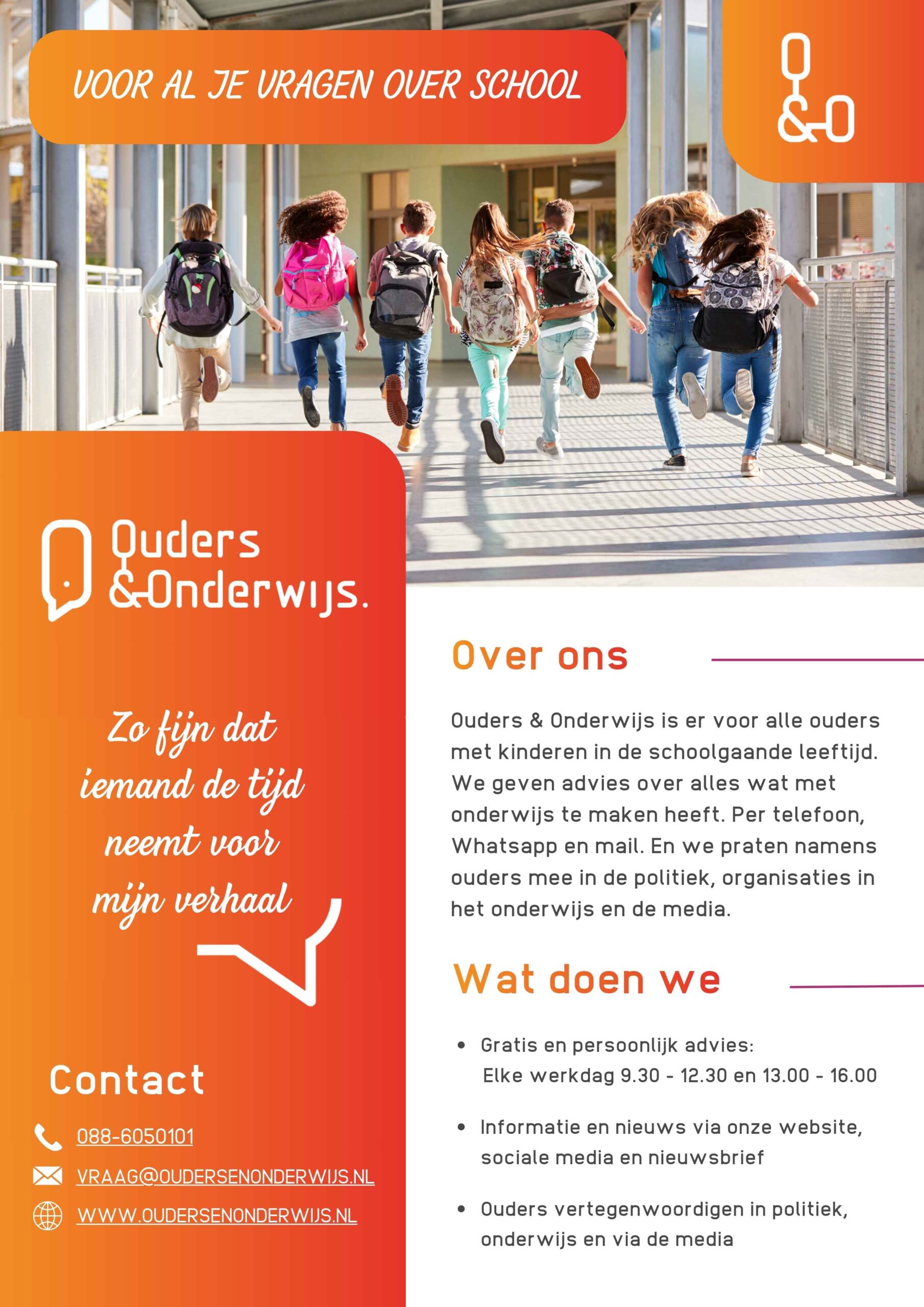 - Bel of Whatsapp op 088-6050101 of mail naar vraag@oudersenonderwijs.nl
